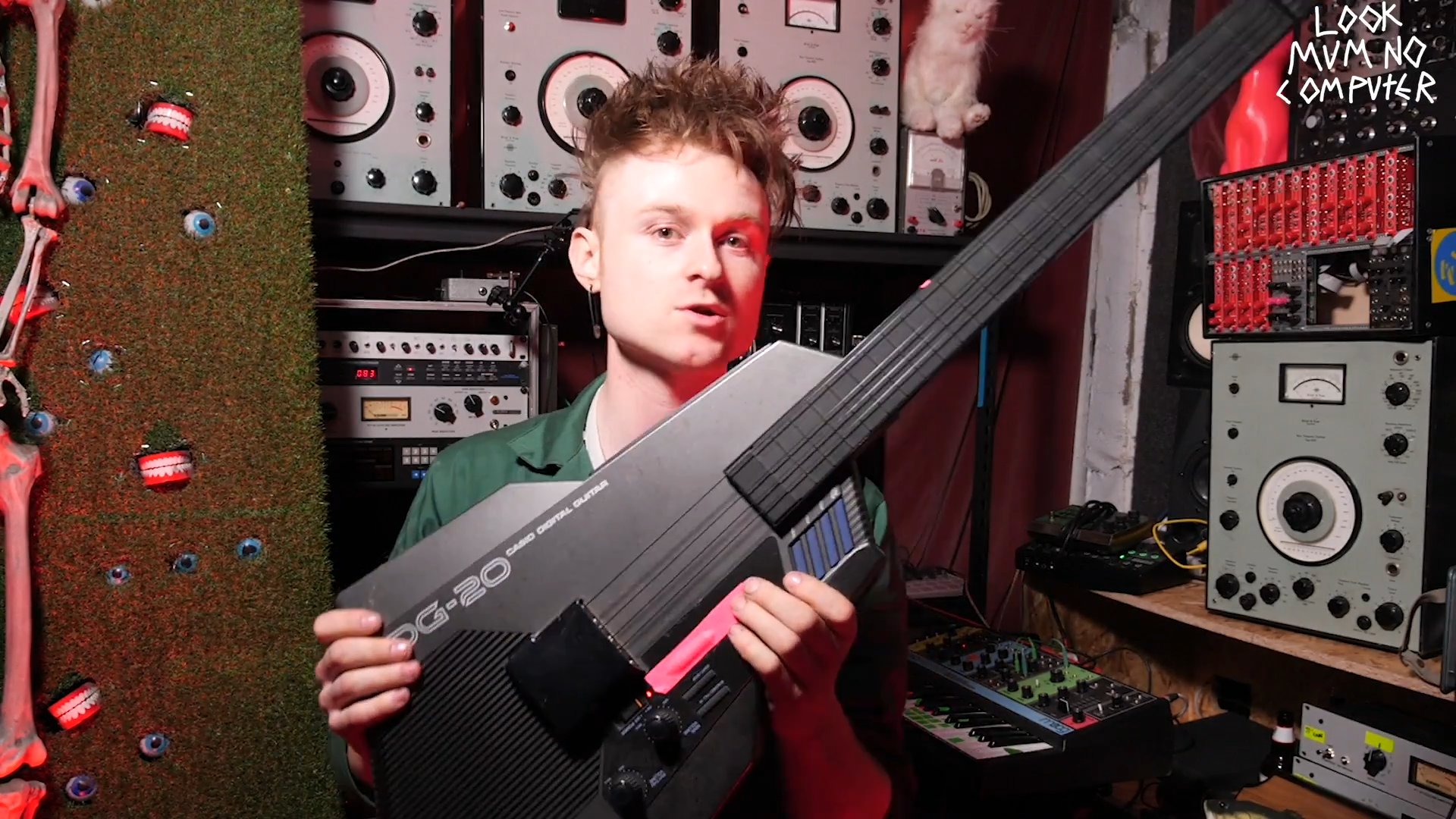 Look Mum No Computer is best known for making unusual and eccentric musical devices made from vintage technology; notably such devices as a Furby organ, a synthesizer fused with a classic Raleigh Chopper bicycle, and a Game Boy Triple Oscillator synthesizer.